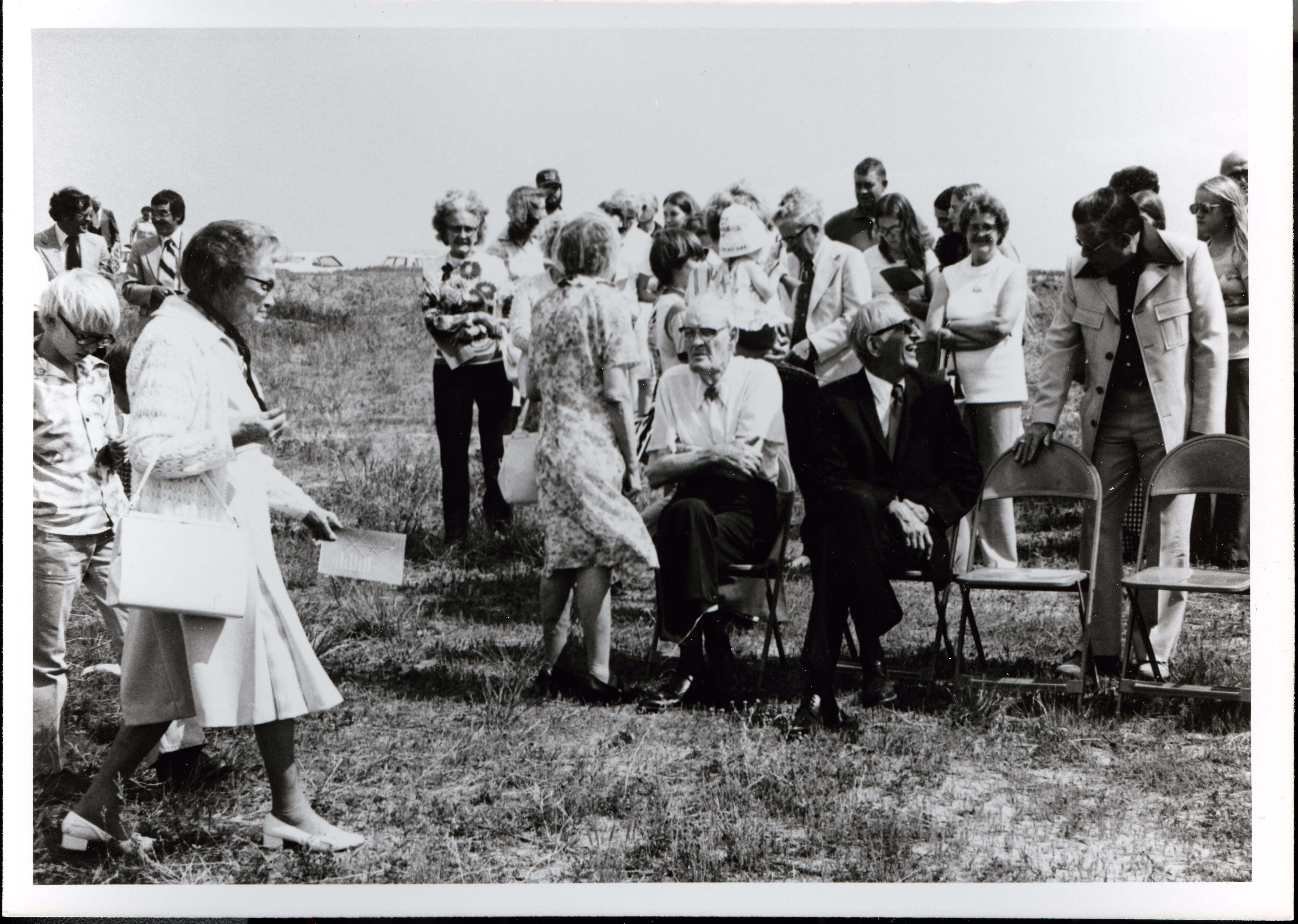 Black and white photograph from ground breaking ceremony on June 27, 1976