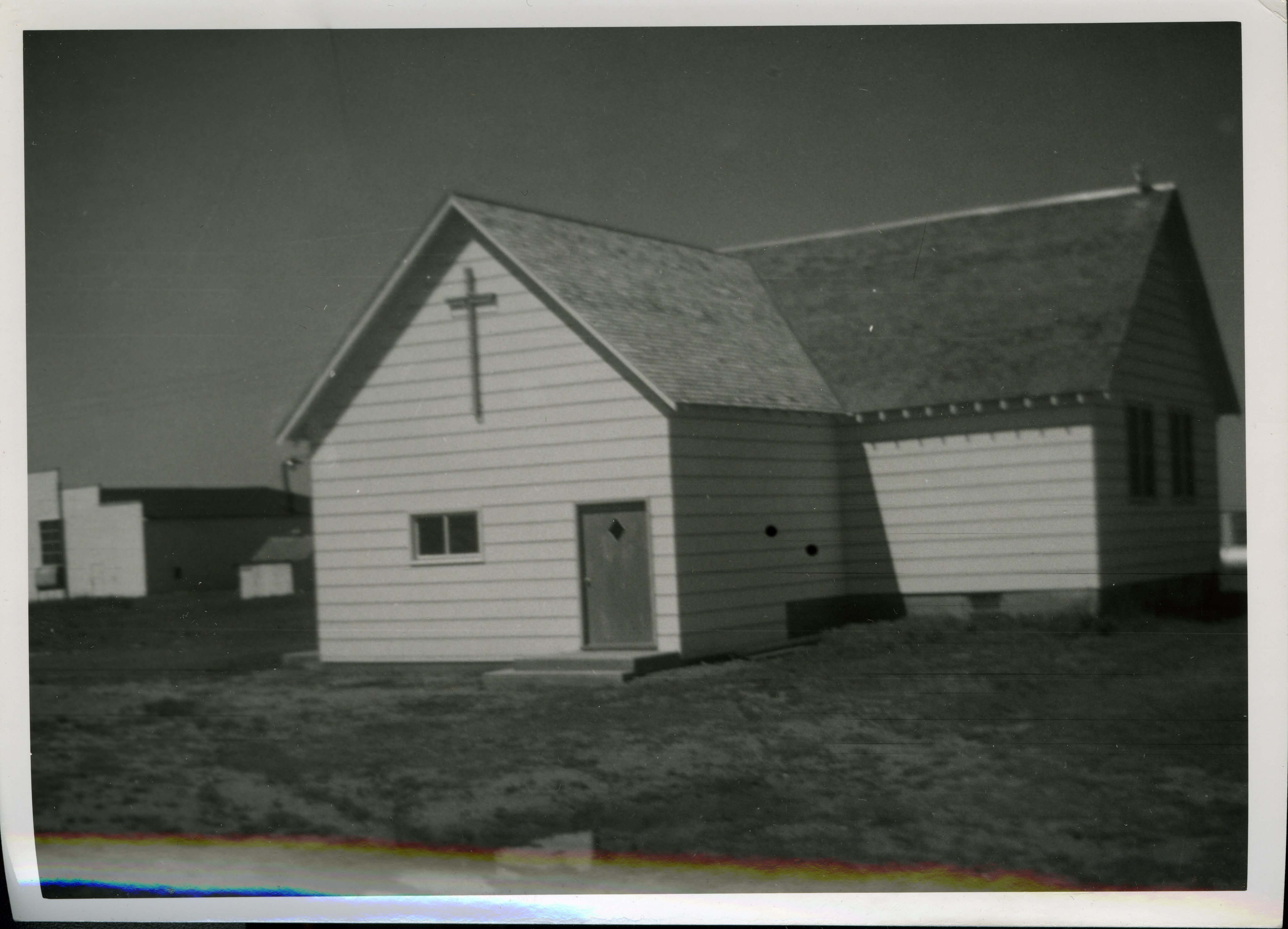 Black and white photograph of the New Haven Methodist Church near Fleming, Colorado as it looked in 1965
