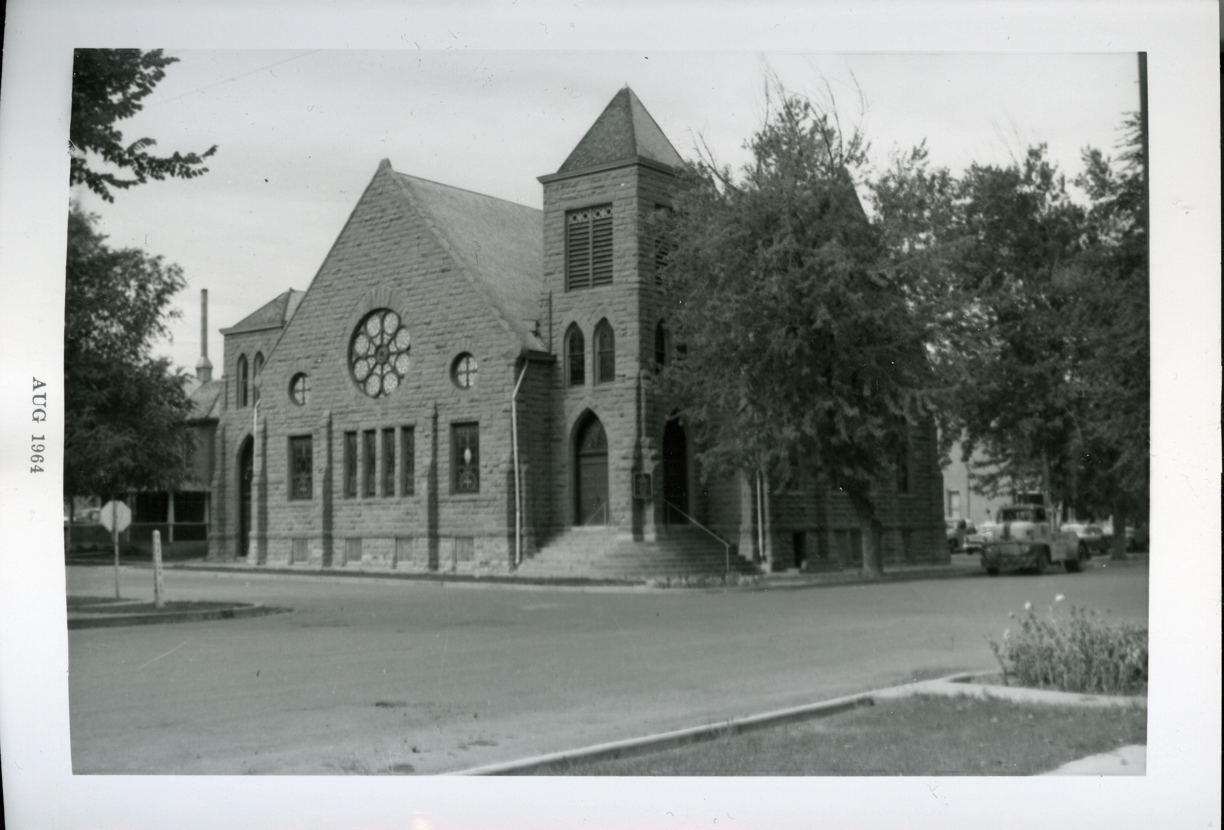 Official photograph taken by the Church of the exterior in 1964, before the fire that burned the stone building in 1973 and it was rebuilt