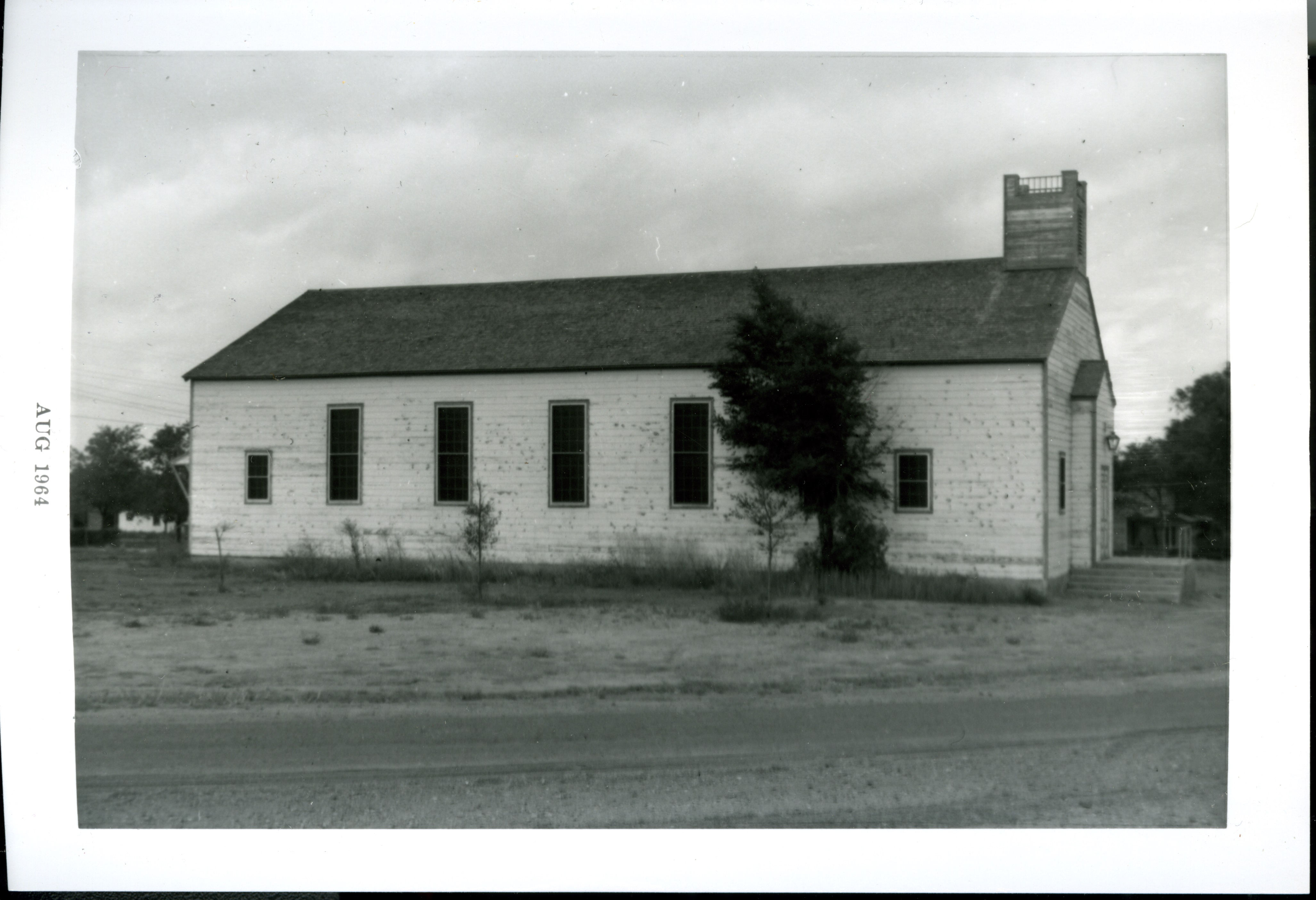 Black and white photograph of Hartman Methodist Church exterior in August, 1964.