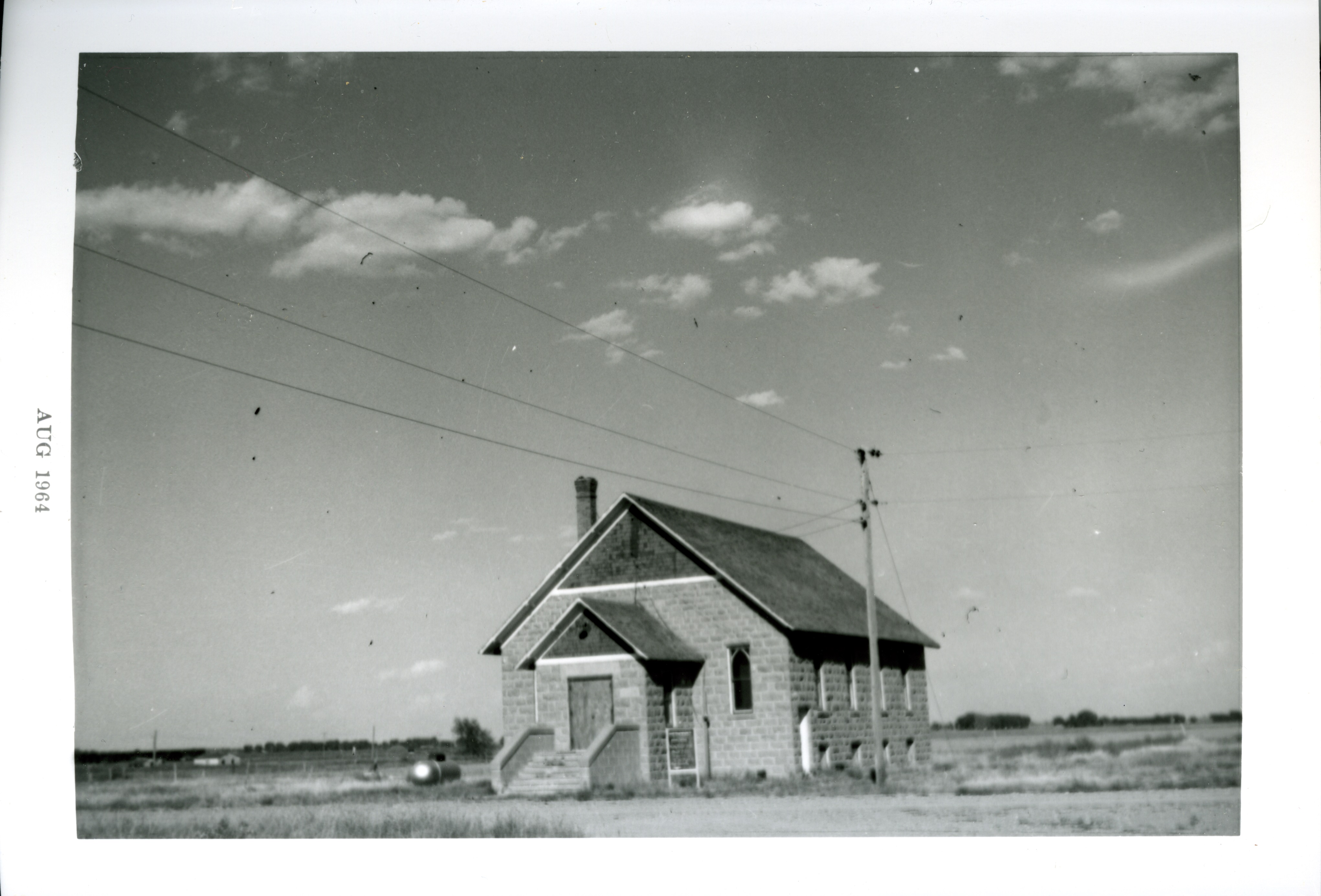Black and white photograph of Hasty Methodist Church exterior in August, 1964.